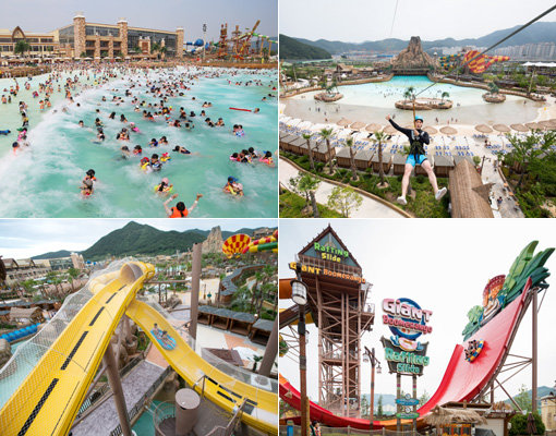 래피드리버는 실제 계곡처럼 꾸민 수로를 따라 래프팅 보트를 타고 급류를 즐기는 시설이다. 토렌트리버는 최대 1.2m에 달하는 강한 파도를 온 몸으로 즐기는 것이 포인트. 이밖에 높이 21m, 길이 170m에 달하는 슬라이드를 타고 내려오는 자이언트 부메랑고, 급류타기의 박진감이 있는 래프팅 슬라이드, 워터파크 롤러코스터 워터코스트, 아찔한 급강하의 아쿠아드롭 등 43개 풀과 라이드를 갖추고 있다.