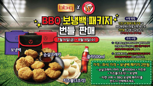 SK 와이번스가 휴가철 인천SK행복드림구장을 방문한 팬들이 더욱 시원하게 야구관람을 할 수 있도록 BBQ와 함께 ‘BBQ 보냉백 패키지’를 출시했다.