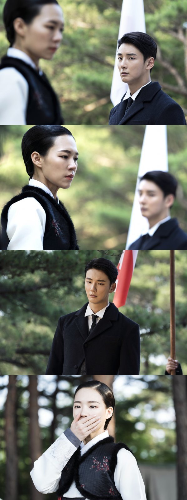 공개된 사진은 내일(5일) 방송되는 ‘녹두꽃’ 41~42회 한 장면을 포착한 것이다. 사진 속 백이현과 송자인은 일장기가 휘날리는 곳에 서 있다. 백이현이 어딘지 의심하는 듯, 혹은 슬픈 듯 날카롭게 송자인을 지켜보는 것과 달리 송자인은 백이현의 시선에도 아랑곳하지 않고 고개를 돌린 채 차가운 표정을 짓고 있어 눈길을 끈다.
