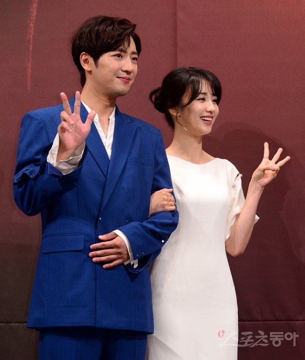 배우 이상엽과 박하선(오른쪽)이 4일 서울시 강남구 임피리얼 팰리스 서울에서 열린 채널A 금토드라마 ‘평일 오후 세시의 연인(이하 오세연)’ 제작발표회에서 포토타임을 갖고 있다.