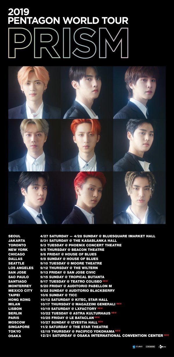 큐브엔터테인먼트는 5일 정오 펜타곤 공식 SNS에 \'2019 PENTAGON WORLD TOUR \'PRISM\'\'의 2차 공지 포스터를 게재하고 해당 소식을 전했다.