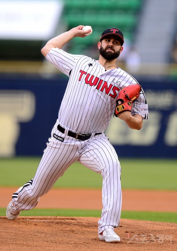 9일 서울 잠실야구장에서 ‘2019 신한은행 MY CAR KBO리그’ 두산 베어스와 LG트윈스 경기가 열렸다. 선발 투수로 등판한 LG 켈리가 역투하고 있다.