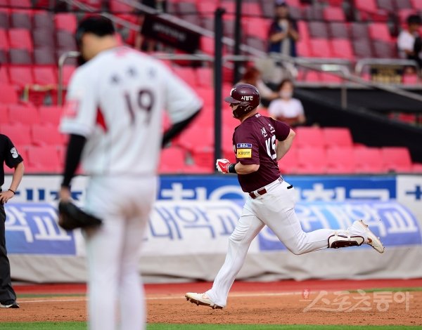 9일 경기도 수원 kt위즈파크에서 ‘2019 신한은행 MY CAR KBO리그’ 키움 히어로즈와 kt 위즈의 경기가 열렸다. 키움 샌즈가 2회초 2사 1루에서 투런홈런을 친 후 그라운드를 돌고 있다.