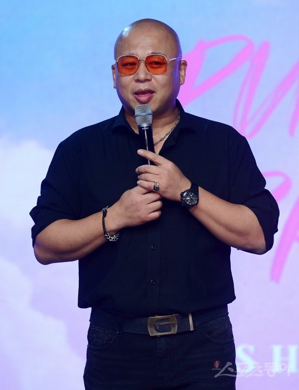 작곡가 돈 스파이크가 11일 서울 강남구 일지아트홀에서 열린 애런의 데뷔 앨범 ‘퍼즐 나인 피스(PUZZLE 9 PIECES)’ 발매 기념 쇼케이스에서 인사말을 하고 있다.