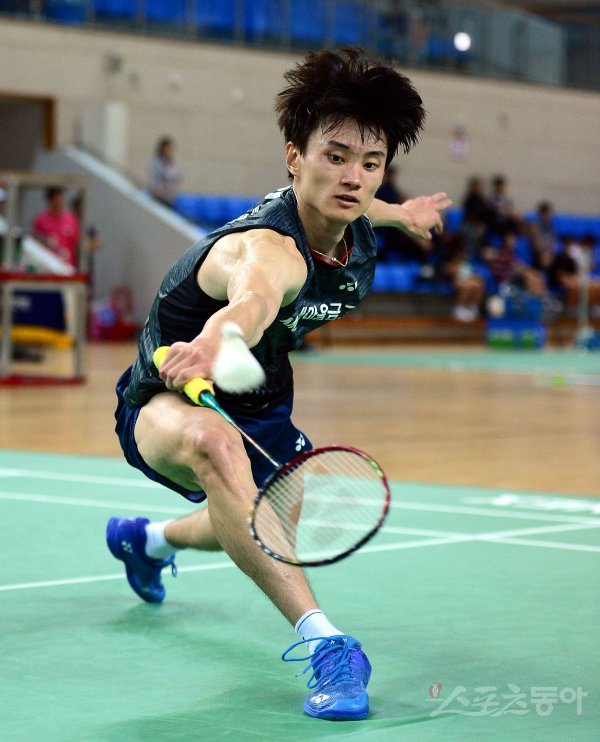 11일 전라남도 화순에서 제 10회 이용대올림픽제패기념 ‘2019 전국학교 및 실업대항 배드민턴 선수권대회’가 열렸다. 동의대학교 안상욱과 한림대학교 조건아의 남자 대학부 단식 결승 경기에서 안상욱이 수비를 펼치고 있다.