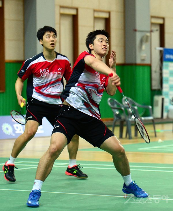 11일 전라남도 화순에서 제 10회 이용대올림픽제패기념 ‘2019 전국학교 및 실업대항 배드민턴 선수권대회’가 열렸다. MG새마을금고(한토성-이상준)와 MG새마을금고(김덕영-강지욱)의 남자 일반부 복식 결승 경기에서 MG새마을금고 김덕영(앞)이 공격을 펼치고 있다.