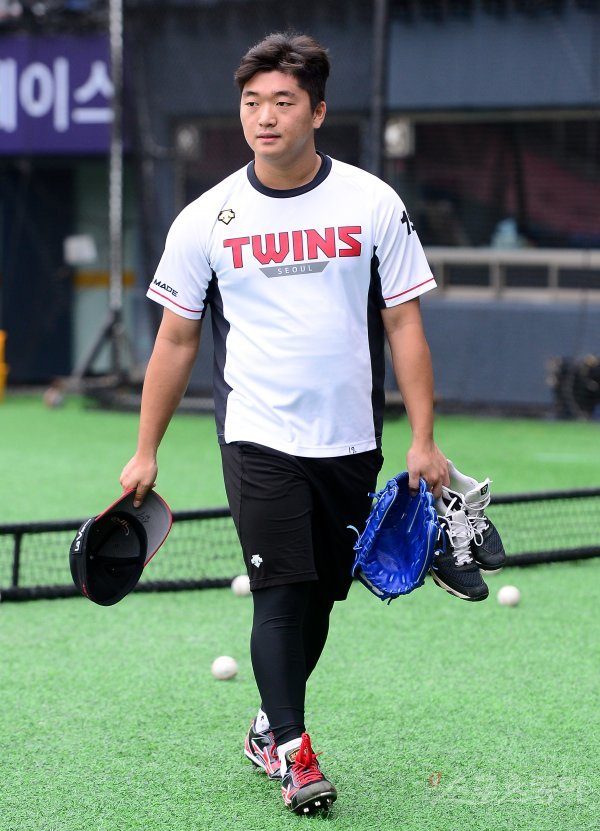 LG 고우석이 훈련을 마치고 락커룸으로 향하고 있다.