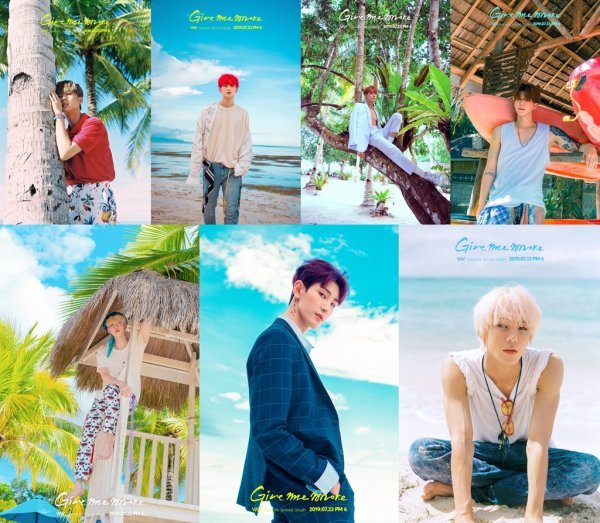 VAV(에이노, 에이스, 바론, 로우, 지우, 제이콥, 세인트반)는 12일 0시부터 공식 SNS 계정을 통해 새 썸머 스페셜 싱글 ‘기브 미 모어(Give me more)’ 썸머 버전 개인 콘셉트 포토를 업로드했다.