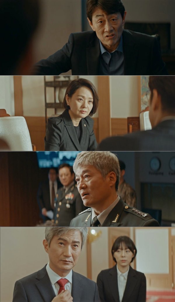 합참의장 이관묵(최재성)은 뼛속까지 군인이다. 오랜 세월 군을 이끌어왔고, 그래서 연구만 해왔던 박무진을 국군통수권자로 인정할 수 없다. 그런 그의 압도적인 카리스마는 박무진의 숨통을 조일 수밖에 없었다. 지난 2회 국회의사당 폭탄 테러가 북한의 소행이라 속단할 수 없다는 주장에 이관묵은 “아마추어 같은 안보관에 낭만적 통일관 때문에 당신들은 보스를 잃었고, 우리 군은 통수권자를 잃었어”라고 소리쳤다. 이관묵은 군에 대한 자부심, 전쟁을 해서라도 적을 물리치겠다는 의지, 무엇보다 나라와 국가를 지키겠다는 신념이 투철한 인물이기 때문이다. 시청자들마저 손에 땀을 쥐고 벙커룸의 대립을 지켜봤고, “최재성 배우, 진짜 장군 같다”라는 평이 쏟아졌다. 힘이 넘치는 발성, 카리스마 있는 눈빛과 강렬한 포스로 이관묵이란 캐릭터를 만들어낸 최재성의 관록이 빛을 내고 있다.