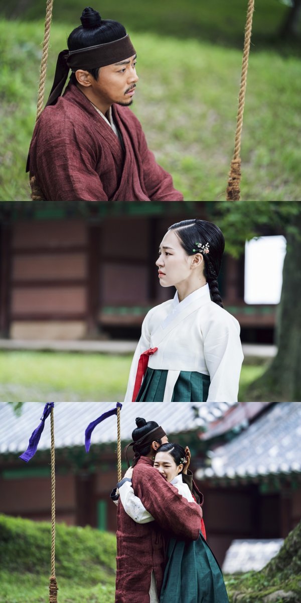 그네에 앉아 송자인을 바라보는 백이강의 눈빛이 한없이 애틋하고 아련하다. 송자인은 금방이라도 눈물이 터질 듯한 표정으로 그런 백이강을 바라보고 있다. 마지막 사진에서는 두 사람이 모든 마음을 털어놓은 듯 와락 서로를 끌어안고 있어 보는 사람까지 두근두근 가슴이 뛴다. 이들은 다시 만나 어떤 대화를 나눴을까. 그토록 헤매고 돌아왔지만 두 사람은 같은 길을 걸을 수 있을까.