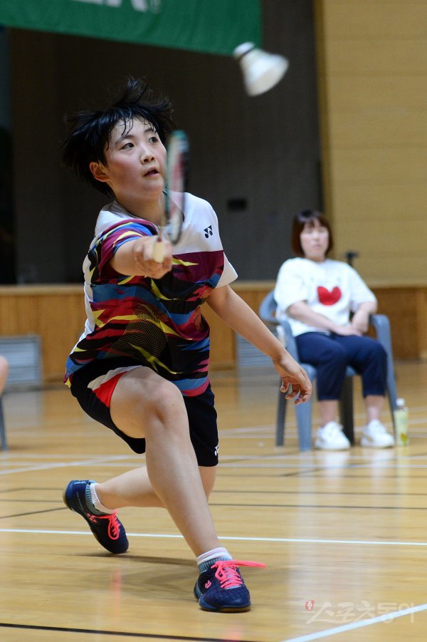 13일 전라남도 화순 하니움문화스포츠센타와 이용대체육관에서 열린 제10회 ‘이용대 올림픽제패기념 2019 화순 전국학교대항 및 실업대항 배드민턴선수권대회’ 여자중학교 단체전 16강 1단식에서 화순제일중 정다연이 리턴을 하고 있다.