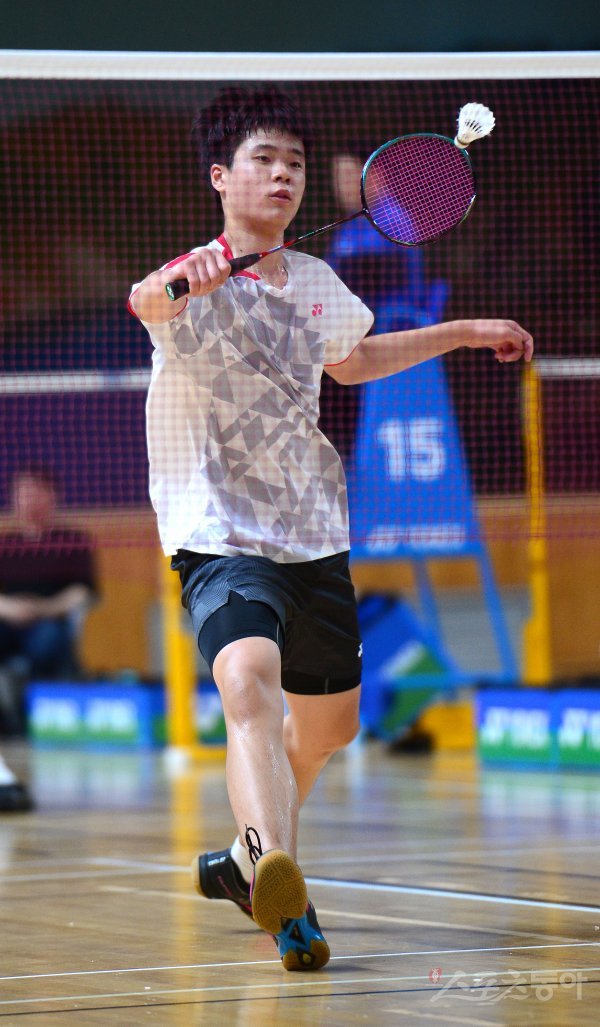 13일 전라남도 화순 하니움문화스포츠센타와 이용대체육관에서 열린 제10회 ‘이용대 올림픽제패기념 2019 화순 전국학교대항 및 실업대항 배드민턴선수권대회’ 남자고등학교 단체전 16강 1단식에서 웅상고 김지웅이 리턴을 하고 있다.