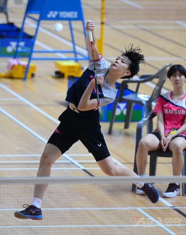 13일 전라남도 화순 하니움문화스포츠센타와 이용대체육관에서 열린 제10회 ‘이용대 올림픽제패기념 2019 화순 전국학교대항 및 실업대항 배드민턴선수권대회’ 여자고등학교 단체전 16강 2단식에서 밀양여고 박도영이 스매싱 공격을 하고 있다.