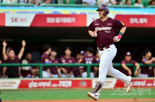 14일 인천 SK행복드림구장에서 ‘2019 신한은행 MY CAR KBO리그’ SK 와이번스와 키움 히어로즈의 경기가 열렸다. 4회초 2사에서 키움 샌즈가 우월 솔로 홈런을 쏘아 올린 뒤 그라운드를 돌고 있다.