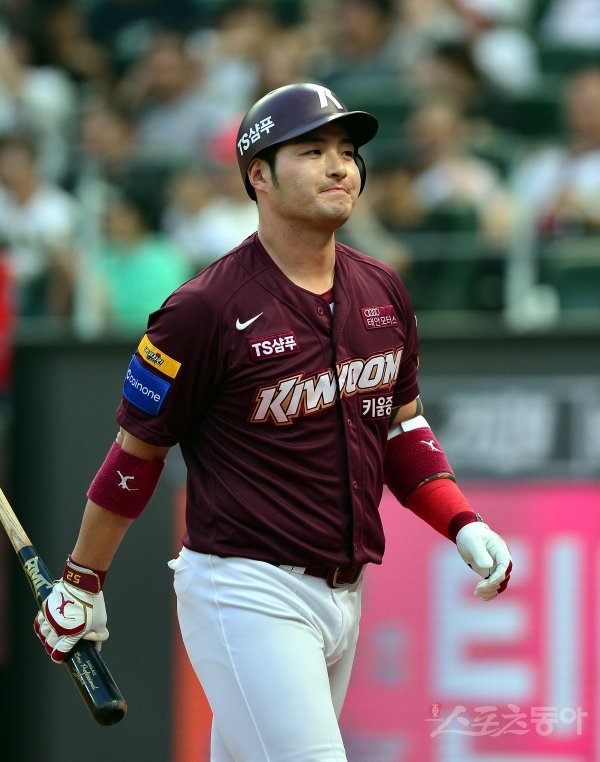 14일 인천 SK행복드림구장에서 ‘2019 신한은행 MY CAR KBO리그’ SK 와이번스와 키움 히어로즈의 경기가 열렸다. 7회초 2사 1, 2루에서 키움 박병호가 대타로 나섰으나 삼진으로 물러나고 있다.