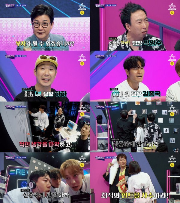 지난 12일 공개된 새로운 티저에서는 한 푼이라도 더 확보하기 위한 세 팀의 눈치싸움이 굉장하다. 세 팀은 지식, 잔머리, 촉을 총동원해 투자 대결을 펼치는가 하며 협박, 눈속임, 심지어 멱살잡이까지 서슴지 않는 등 치사하고 치열한 쩐의 전쟁을 예고한다. 이처럼 한치도 예측할 수 없는 전개로 ‘리와인드’만의 독특한 게임 방식에 궁금증이 더해진 가운데, “프로그램 좋네~ 3프로 찍겠는데?”라는 박명수 특유의 입담이 더욱 기대를 고조시킨다.