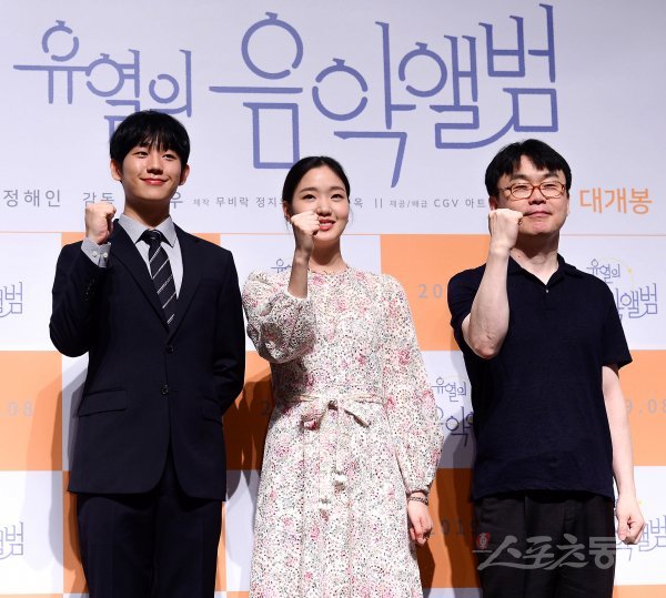 배우 정해인과 김고은, 정지우 감독(왼쪽부터)이 15일 서울 강남구 압구정로에 위치한 CGV 압구정에서 열린 영화 ‘유열의 음악앨범’ 제작보고회에서 포즈를 취하고 있다.
