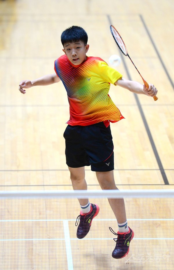 15일 전라남도 화순 하니움문화스포츠센타와 이용대체육관에서 열린 제10회 ‘이용대 올림픽제패기념 2019 화순 전국학교대항 및 실업대항 배드민턴선수권대회’ 남자중학교 단체전 결승 2단식에서 완주중 박승민이 스매싱 공격을 하고 있다.