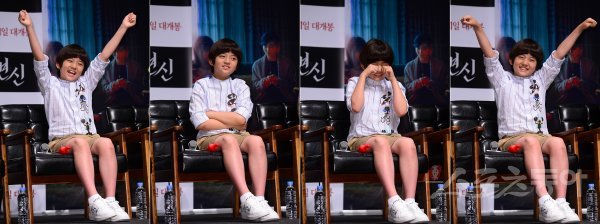 아역배우 김강훈이 16일 서울 강남구 압구정로에 위치한 CGV 압구정에서 열린 영화 ‘변신’ 제작보고회에서 포즈를 취하고 있다.