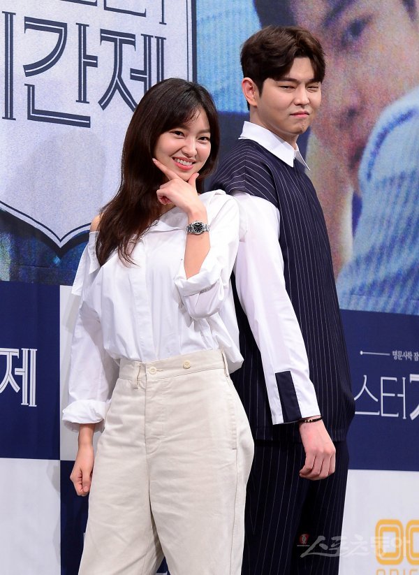 배우 최유화와 윤균상(오른쪽)이 16일 서울시 강남구 임피리얼 팰리스 서울에서 열린 OCN 새 수목드라마 ‘미스터 기간제’ 제작발표회에서 포토타임을 갖고 있다.