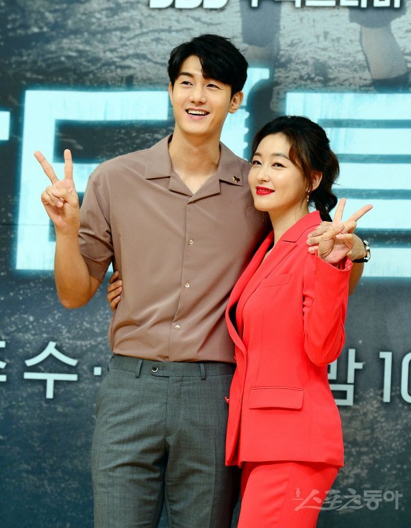 16일 서울 목동 SBS방송센터에서 열린 SBS 수목드라마 ‘닥터탐정’ 제작발표회에 참석한 이기우와 박진희가 카메라를 향해 포즈를 취하고 있다.