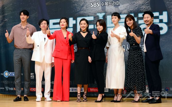 16일 서울 목동 SBS방송센터에서 열린 SBS 수목드라마 ‘닥터탐정’ 제작발표회에 참석한 이기우, 봉태규, 박진희, 박지영, 류현경, 이영진, 후지이 미나, 정강희가 카메라를 향해 포즈를 취하고 있다.