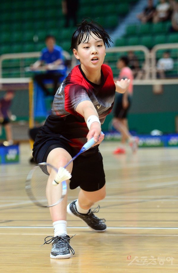 16일 전라남도 화순 하니움문화스포츠센타와 이용대체육관에서 열린 제10회 ‘이용대 올림픽제패기념 2019 화순 전국학교대항 및 실업대항 배드민턴선수권대회’ 여자중등부 32강에서 언주중 김나현이 리턴을 하고 있다.