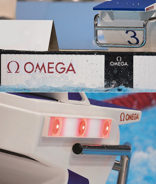 오메가는 대회장을 찾은 관중에게도 정확한 정보를 즉각적으로 제공한다. 스타팅 블록 작은 원형의 스위밍 쇼(Swimming Show)는 경기 종료 시 1등부터 3등까지의 순위가 표시된다. 1등은 1개, 2등은 2개, 3등은 3개의 불이 켜져 관중은 공식 기록이 전광판에 뜨기 전에 미리 순위를 알 수 있는 것이다.