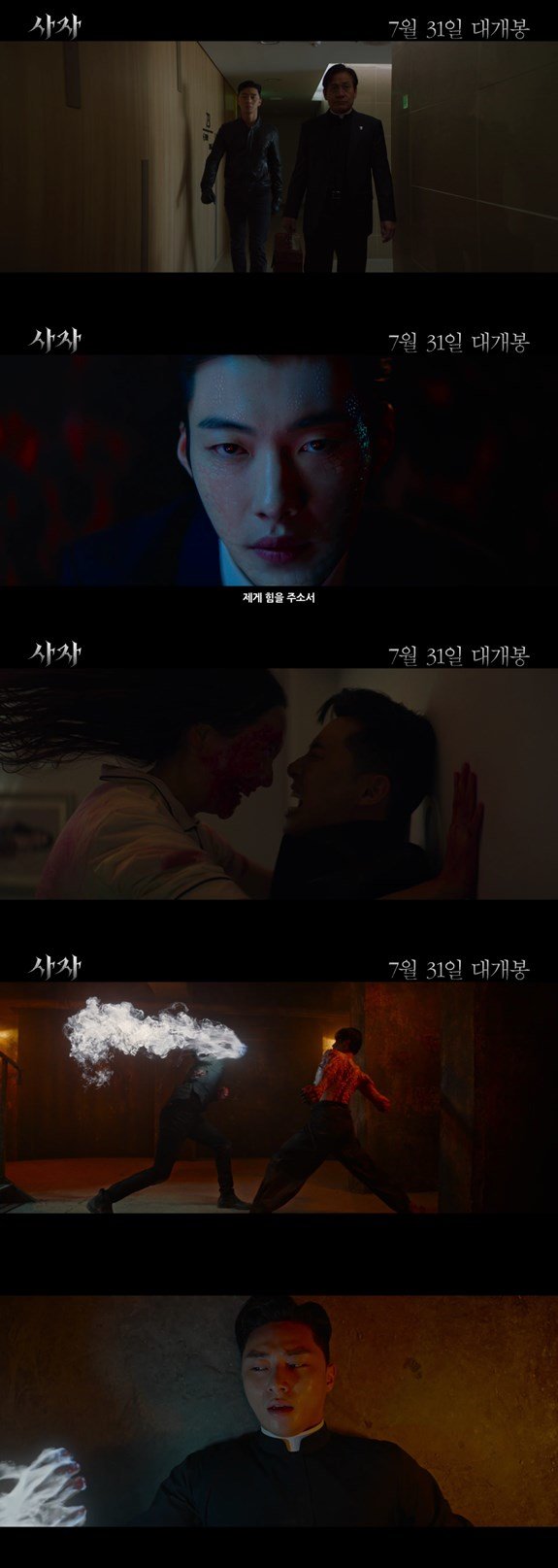 3차 포스터와 함께 공개된 예고편은 격투기 챔피언 ‘용후’의 어린 시절의 모습으로 시작되어 눈길을 사로잡는다. 불의의 사고로 아버지를 잃은 뒤 세상에 대한 불신과 신에 대한 증오만 남은 격투기 챔피언 ‘용후’, 그리고 세상 곳곳에 숨어 있는 악에 홀로 맞서게 된 구마 사제 ‘안신부’의 만남은 전에 없던 새로운 설정으로 흥미를 자극한다. 세상을 향한 원망을 쉽게 지우지 못하고 손에 생긴 의문의 상처로 인해 고통받는 ‘용후’가 ‘안신부’를 만나 변화를 겪는 모습은 ‘용후’와 ‘안신부’가 보여줄 뜨거운 드라마를 예고한다. 이어 비밀스러운 공간에서 악의 존재를 향한 자기만의 의식을 치르는 검은 주교 ‘지신’은 미스터리한 존재감과 압도적인 비주얼로 이목을 집중시킨다.