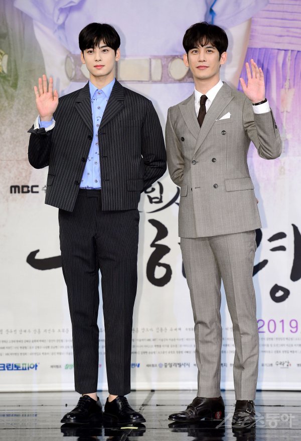 17일 서울 상암동 MBC사옥에서 열린 MBC 수목미니시리즈 ‘신입사관 구해령’ 제작발표회에 참석한 차은우와 박기웅이 카메라를 향해 포즈를 취하고 있다.