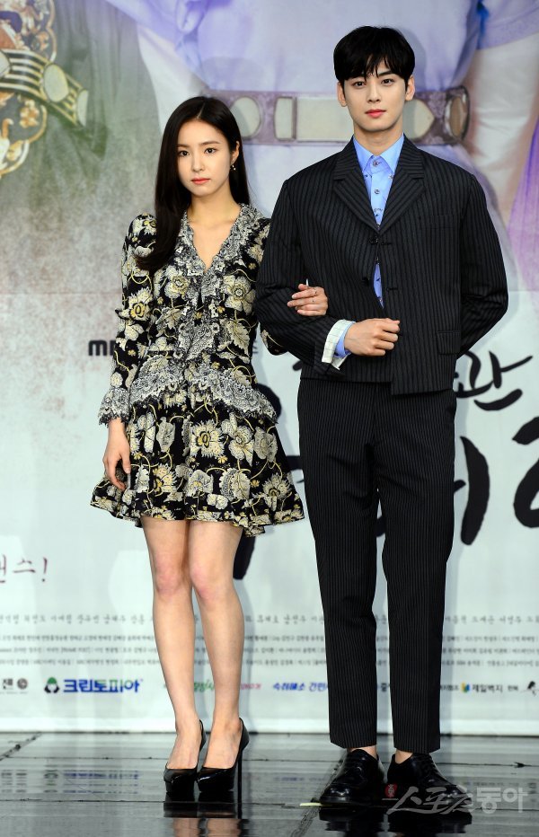 17일 서울 상암동 MBC사옥에서 열린 MBC 수목미니시리즈 ‘신입사관 구해령’ 제작발표회에 참석한 신세경과 차은우가 카메라를 향해 포즈를 취하고 있다.