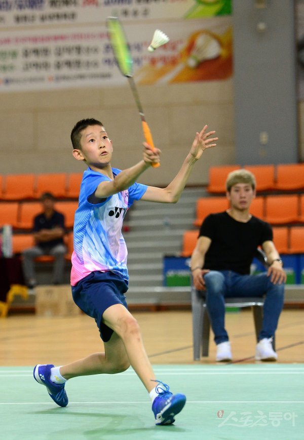 17일 전라남도 화순 하니움문화스포츠센타와 이용대체육관에서 열린 제10회 ‘이용대 올림픽제패기념 2019 화순 전국학교대항 및 실업대항 배드민턴선수권대회’ 남자초등부 결승 1단식에서 대전매봉초 최아승이 리턴을 하고 있다.