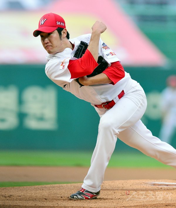 SK 선발투수 박종훈이 힘차게 볼을 던지고 있다.