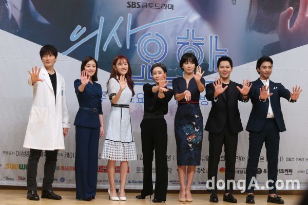 18일 오후 서울 양천구 목동 SBS 사옥에서 열린 드라마 \'의사요한\' 제작발표회에서 출연진이 포토타임을 하고 있다.