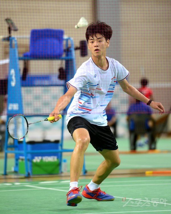 18일 전라남도 화순 하니움문화스포츠센타와 이용대체육관에서 열린 제10회 ‘이용대 올림픽제패기념 2019 화순 전국학교대항 및 실업대항 배드민턴선수권대회’ 남자중등부 단식 준결승에서 대방중 김병재가 리턴을 하고 있다.