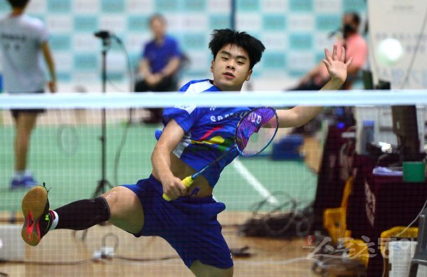 18일 전라남도 화순 하니움문화스포츠센타와 이용대체육관에서 열린 제10회 ‘이용대 올림픽제패기념 2019 화순 전국학교대항 및 실업대항 배드민턴선수권대회’ 남자고등부 단식 준결승에서 매원고 최평강이 스매싱 공격을 하고 있다.