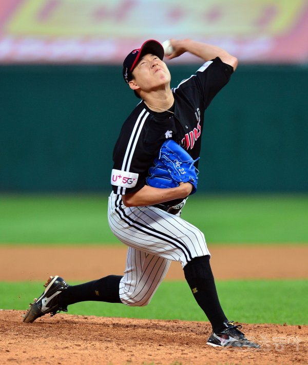 LG 선발투수 차우찬이 힘차게 볼을 던지고 있다.