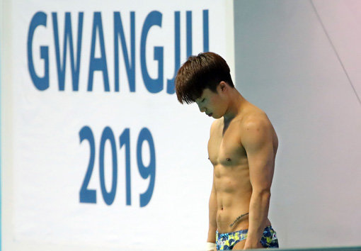 한국 남자 다이빙의 희망 우하람(21·국민체육진흥공단)이 18일 광주 남부대학교 시립국제수영장에서 열린 2019 광주세계수영선수권대회 다이빙 남자 3m 스프링보드 결선에서 1~6차시기 합계 478.80점으로 4위를 차지했다. 3차시기까지 총점 249.30으로 4위를 유지했지만, 난도 3.5의 연기를 펼친 4차시기에서 47.25점을 받은 게 치명적이었다. 5차시기에서 82.80점, 이날 최고난도(3.9) 연기를 펼친 6차시기에서 99.45점을 받으며 희망을 키웠지만 한 번 벌어진 격차를 줄이기에는 역부족이었다. 셰쓰이(545.45점)~차오위안(517.85점·이상 중국)이 금·은메달을 차지했고, 잭 로어(영국·504.55점)가 동메달을 목에 걸었다.