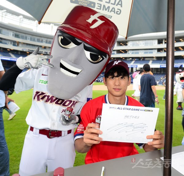 21일 창원NC파크에서 ‘2019 신한은행 MY CAR KBO리그’ 올스타전이 열렸다. 키움 이정후가 경기 전 열린 사인회에서 포즈를 취하고 있다.