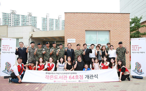 롯데홈쇼핑이 19일 인천시 부평구 제9공수특전여단 관사에 아동과 여성을 위한 문화공간인 작은도서관 64호점(사진)을 열었다.