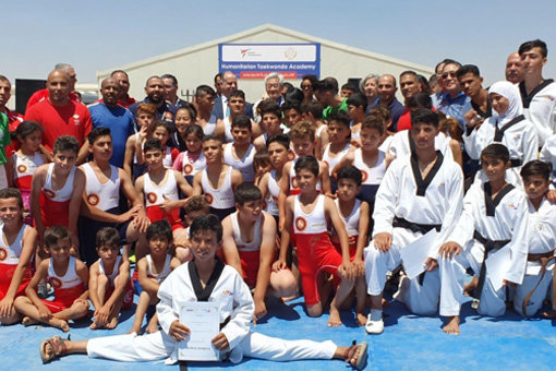 세계태권도연맹(WT)은 20일(한국시간) 요르단의 아즈락 시리아 난민캠프에서 태권도박애재단(THF) 및 국제레슬링연맹(UWW)과 함께 올림픽 스포츠 종목 최초 합동 난민 청소년 돕기 행사를 열었다.