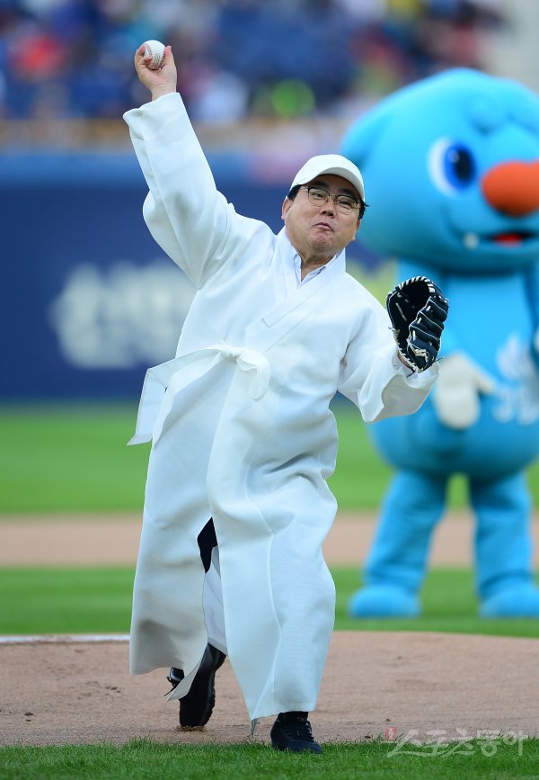 21일 창원NC파크에서 ‘2019 신한은행 MY CAR KBO리그’ 올스타전이 열렸다. 허성무 창원시장이 경기 전 시구행사에서 힘차게 공을 던지고 있다. 창원 | 김진환 기자 kwangshin00@donga.com