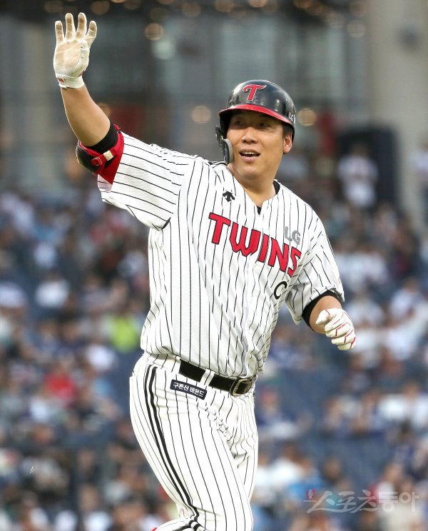 21일 창원NC파크에서 ‘2019 신한은행 MY CAR KBO리그’ 올스타전이 열렸다. 나눔올스타 LG 김현수가 4회말 동점 투런홈런을 친 후 덕아웃을 향해 세리머니를 하고 있다. 창원 | 김진환 기자 kwangshin00@donga.com