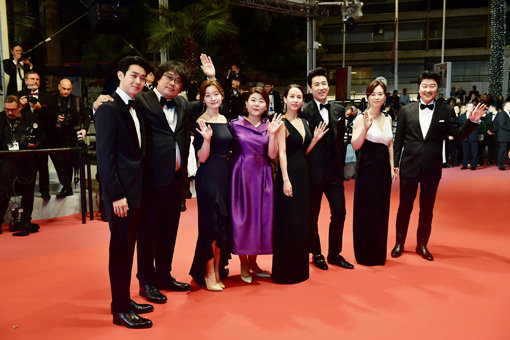 영화 ‘기생충’이 1000만 관객을 돌파하며 한국영화의 새로운 힘을 확인시켰다. 사진은 올해 5월 황금종려상을 안겨준 칸 국제영화제의 레드카펫 행사에 참여한 연출자 봉준호 감독(왼쪽 두 번째)과 주연 배우들. 사진제공|CJ엔터테인먼트