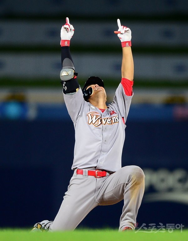 21일 창원NC파크에서 ‘2019 신한은행 MY CAR KBO리그’ 올스타전이 열렸다. 드림올스타 SK 한동민이 9회초 1사 1,2루에서 역전 2타점 2루타를 친 후 환호하고 있다. 창원 | 김진환 기자 kwangshin00@donga.com