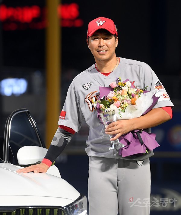 21일 창원NC파크에서 열린 ‘2019 신한은행 MY CAR KBO리그’ 올스타전에서 드림올스타가 9-7 역전승을 거뒀다. 경기 후 MVP에 선정된 드림올스타 한동민이 부상으로 받은 자동차 옆에 서서 기념촬영을 하고 있다. 창원 | 김진환 기자 kwangshin00@donga.com