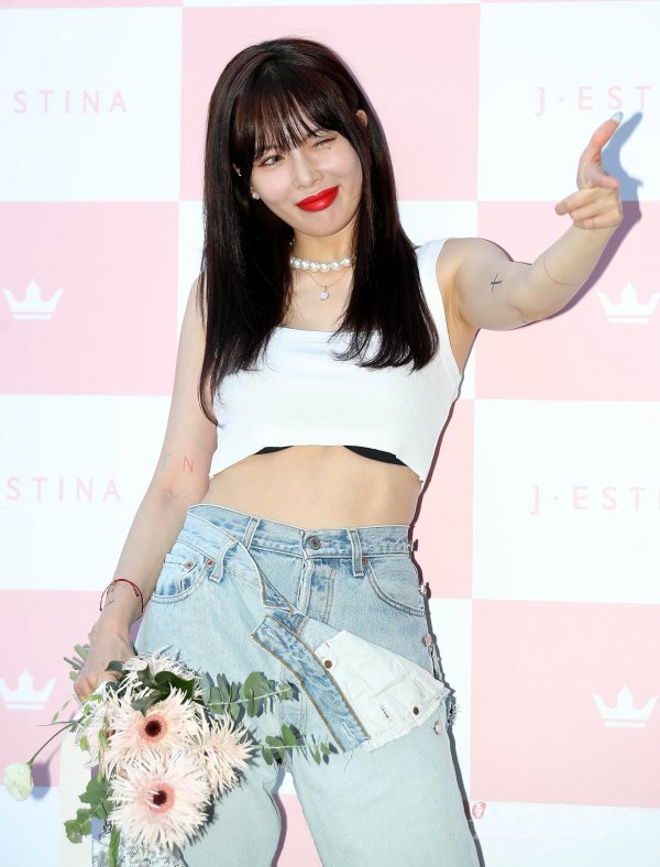 가수 현아가 22일 서울 성수동에 위치한 한 매장에서 열린 글로벌 럭셔리 브랜드의 새 컬렉션 런칭 행사에 참석해 포즈를 취하고 있다. 김진환 기자 kwangshin00@donga.com