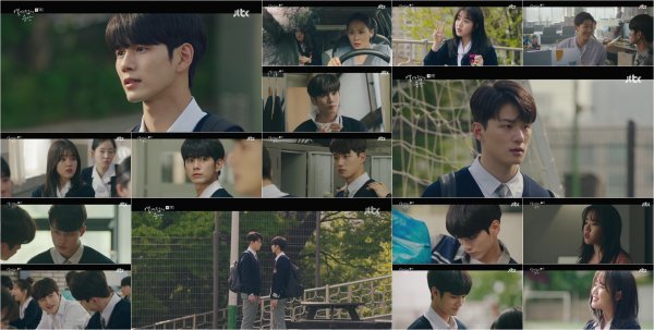 이날 방송은 준우(옹성우 분)와 수빈(김향기 분)의 조금 특별한 첫 만남으로 시작됐다. 전학 첫날, 자전거를 타고 등교 중이던 준우가 수빈의 엄마 차에 부딪힐 뻔하며 두 사람의 인연이 시작된 것. 이어 철부지 부담임 한결(강기영 분)과 젠틀한 반장 휘영(신승호 분)의 소개로 ‘천봉고’에 입성하게 된 준우의 전학 생활은 시작부터가 순탄치 않았다.