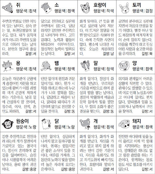 ▲ 오늘의 운세 도표. 스포츠동아