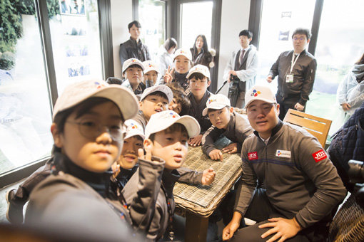 CJ그룹은 오는 10월에 열리는 ‘더 CJ컵’에 많은 꿈나무들을 초청해 PGA투어 출전선수들과의 만남과 골프클리닉 등을 실시할 예정이다. 사진은 지난 대회 때 제주출신 프로골퍼 임성재와 뜻깊은 시간을 보낸 골프 꿈나무들의 모습. 사진제공|CJ그룹